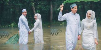 Selamba Redah Banjir Dengan Baju Kahwin, Kedua Mempelai Ini Punya Cara...